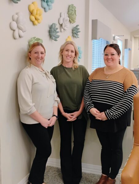 (From left to right: Kayla Salyers, RN; Jennifer B., executive director, and Amanda Villarreal, Operations Support Specialist.)